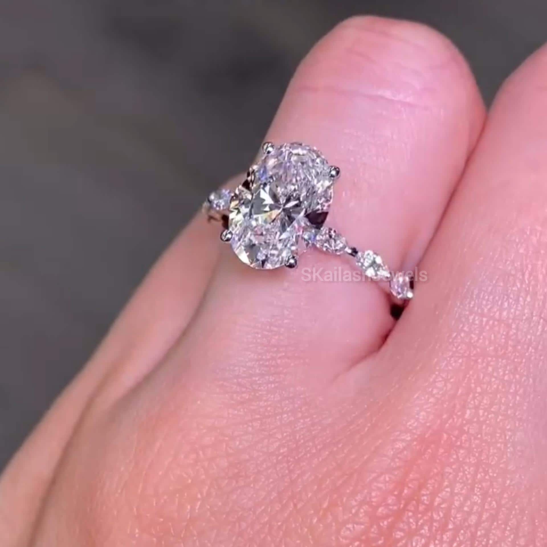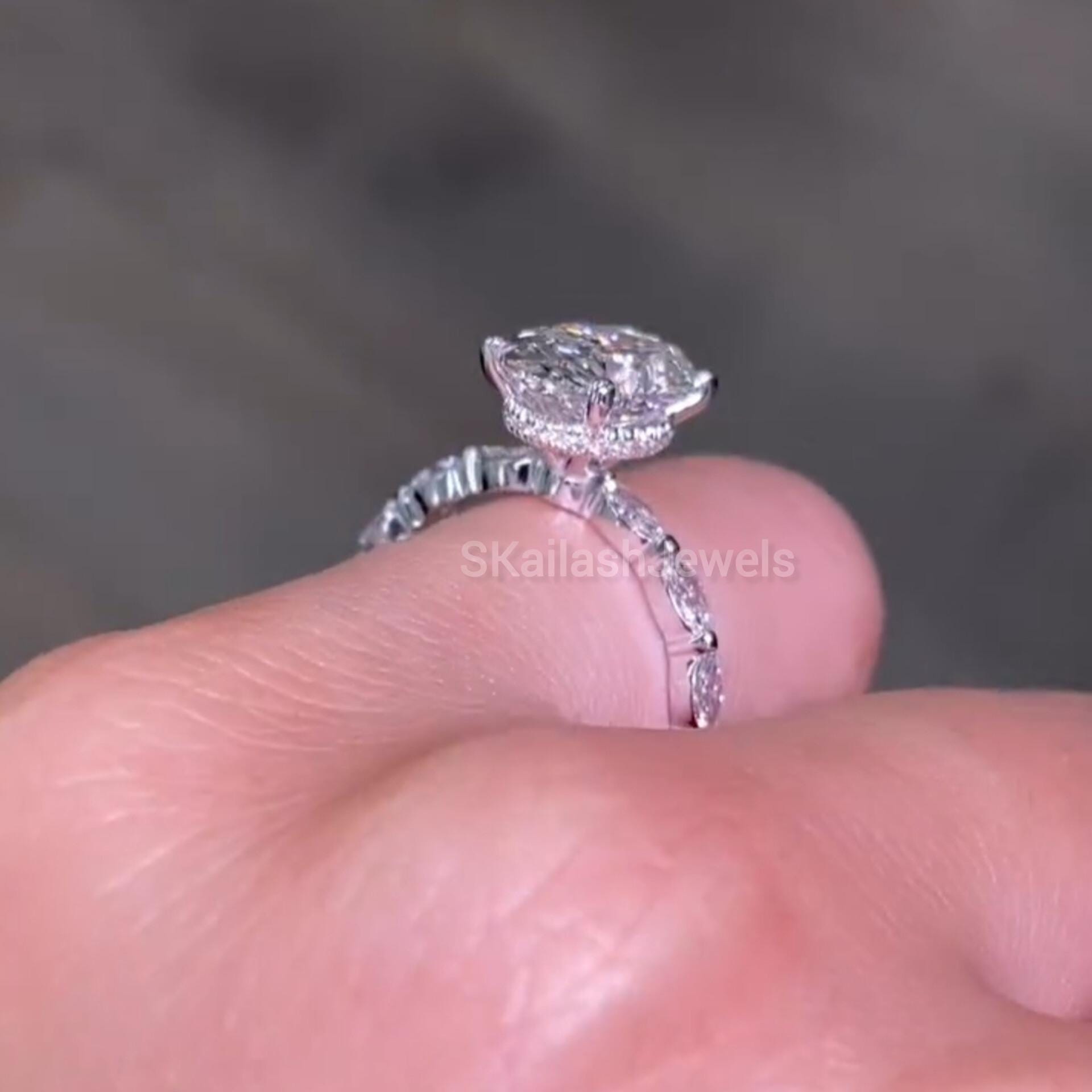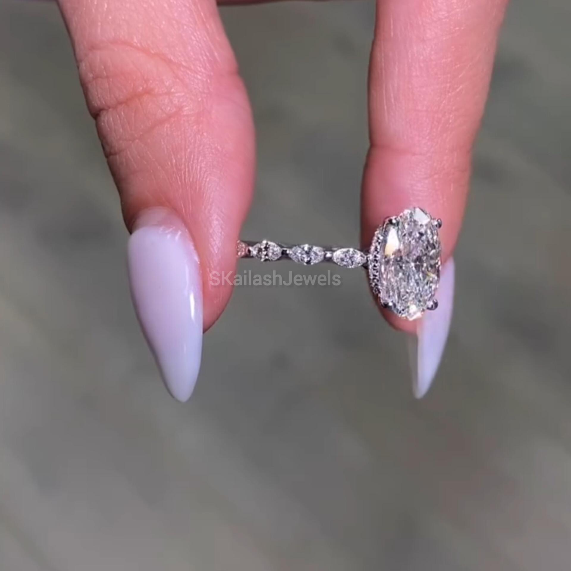 3 CT Oval Cut Moissanite Engagement Ring, Side Stone Marquise, 14K Solid Gold, Hidden Halo Ring Gift For Her, Anniversary Ring, Wedding Gift