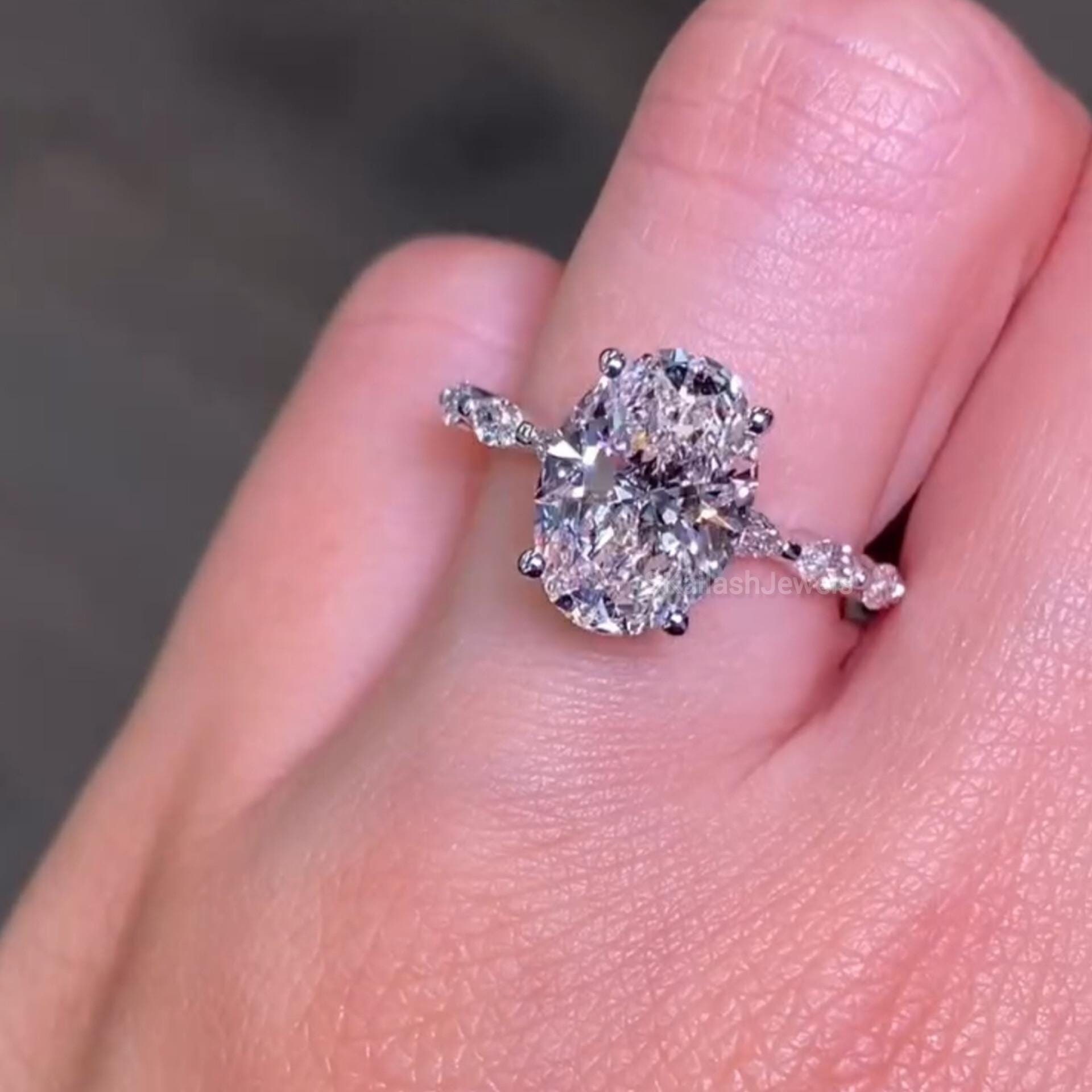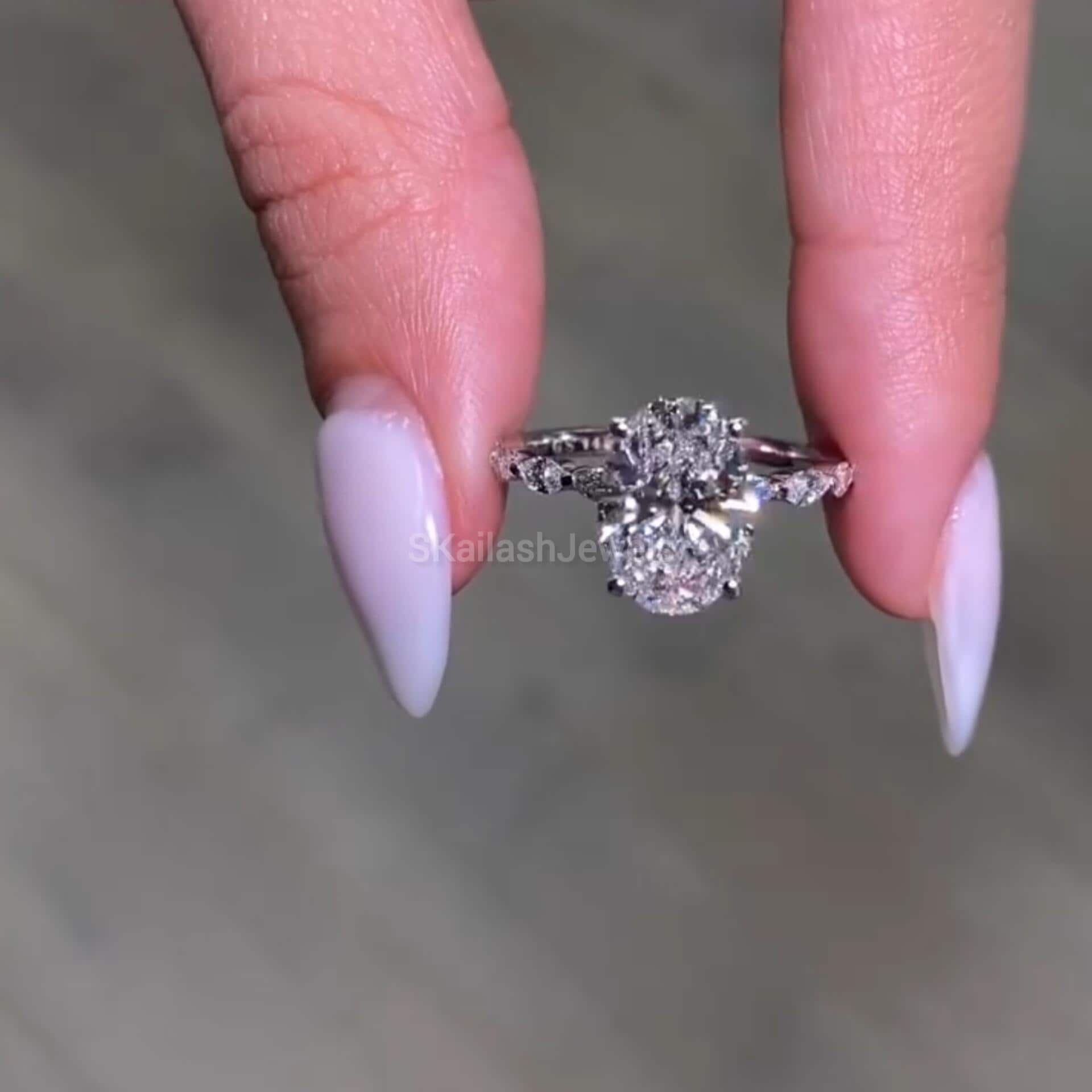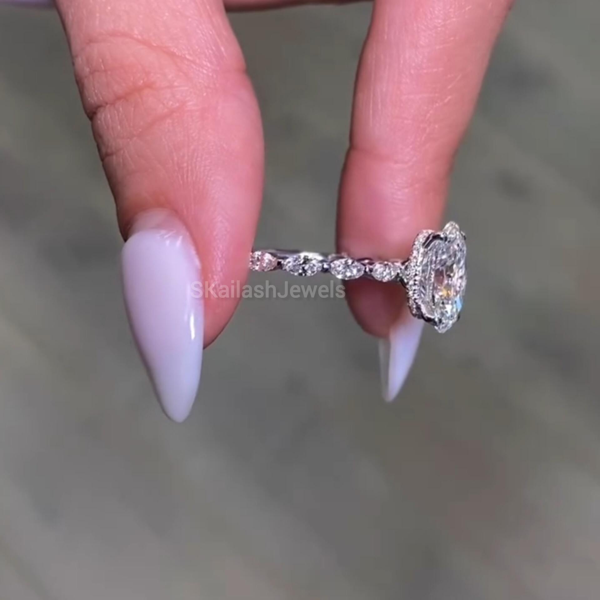 3 CT Oval Cut Moissanite Engagement Ring, Side Stone Marquise, 14K Solid Gold, Hidden Halo Ring Gift For Her, Anniversary Ring, Wedding Gift