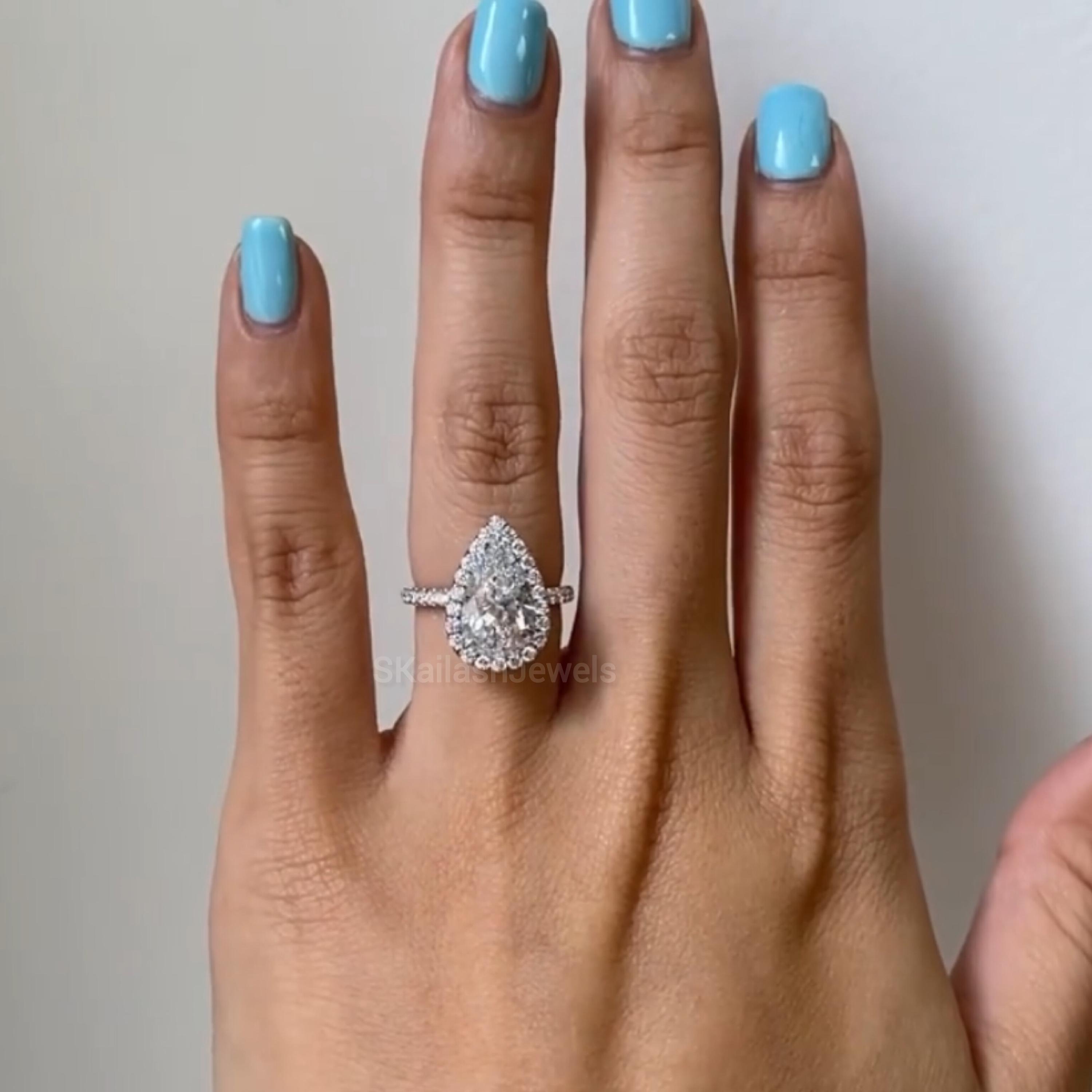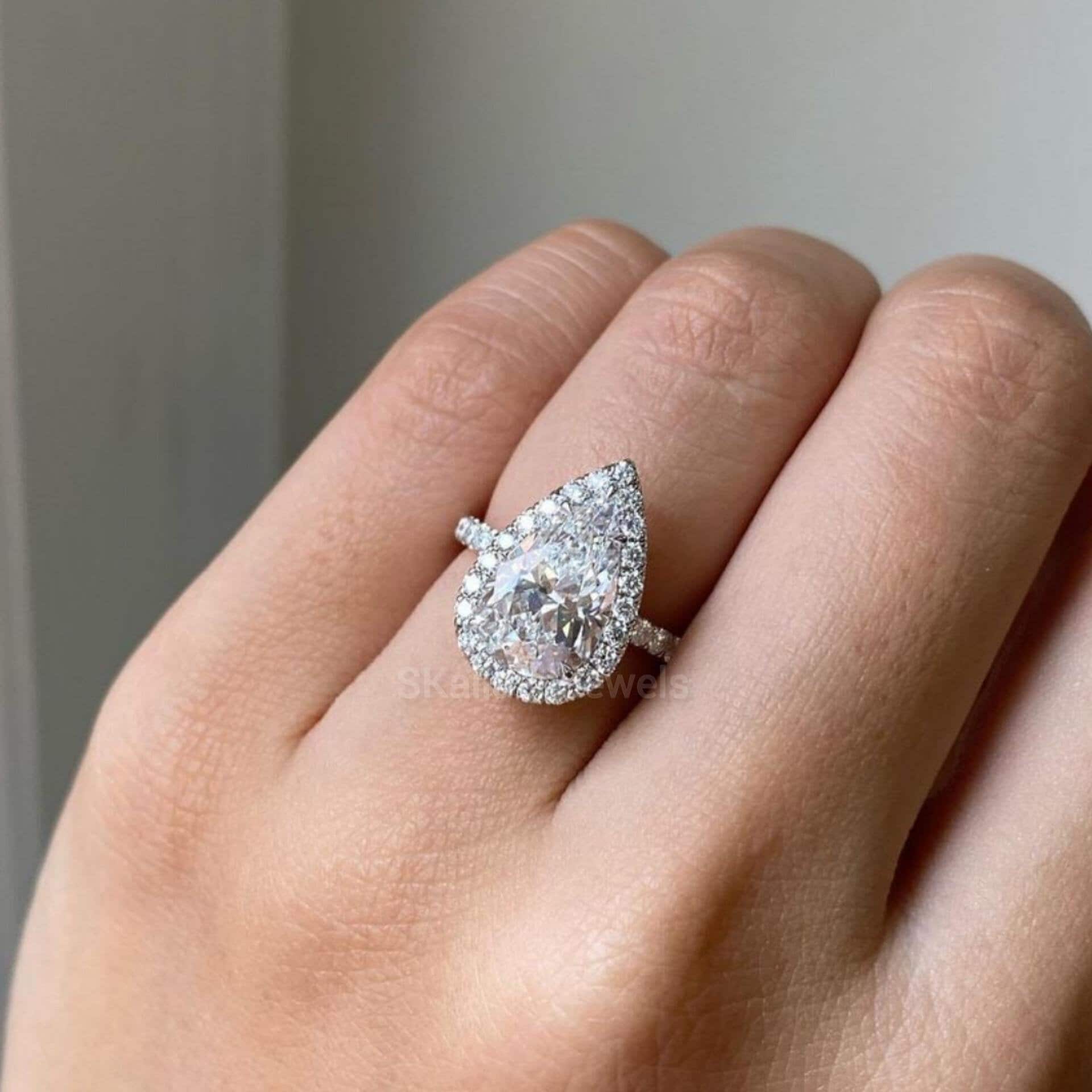 Vintage 4 CT Pear Cut Hidden Halo Moissanite Engagement Ring 14K White Gold Ring Anniversary Ring For Women Gift For Her Promise Ring Gift, Bridal Ring Set, Radiant Moissanite Claw Prong Ring, Unique Design Engagement Ring, White/Yellow/Rose Gold Moissanite Ring, Moissanite Wedding Ring, Ring for Women, Moissanite Engagement Ring, Handmade Ring, Fine Jewelry, Moissanite Jewelry, Women Jewelry, Statement Ring, Customized Ring