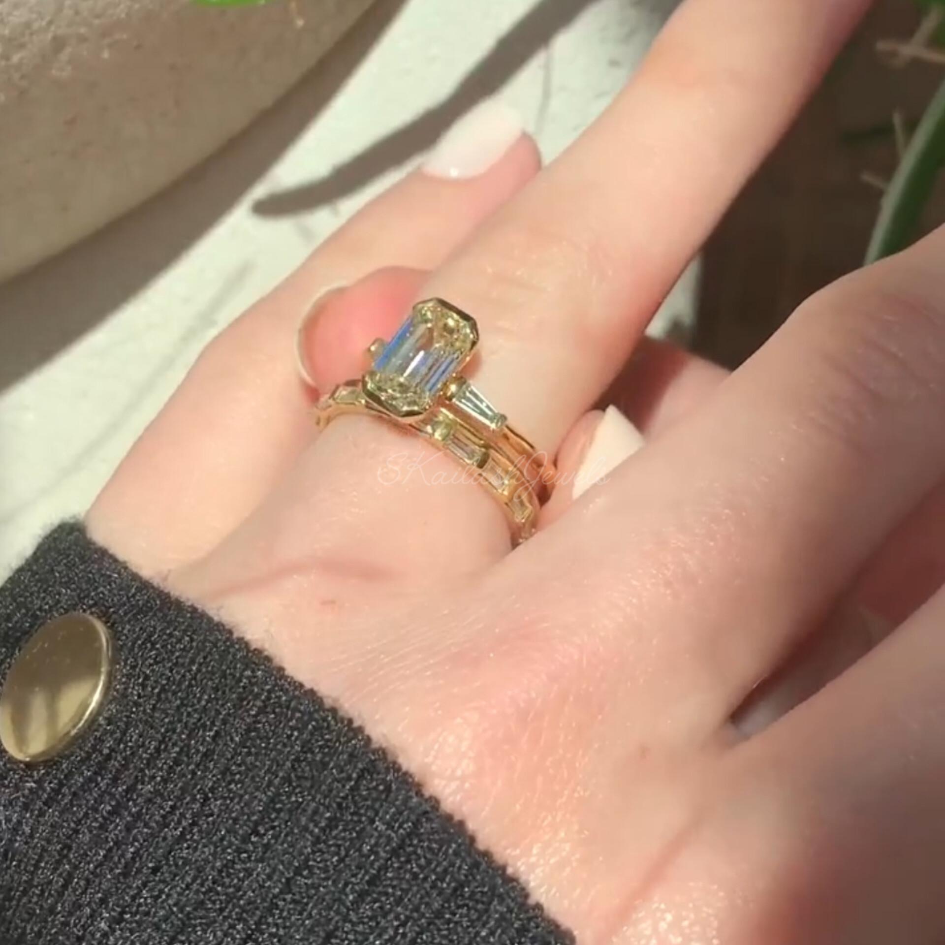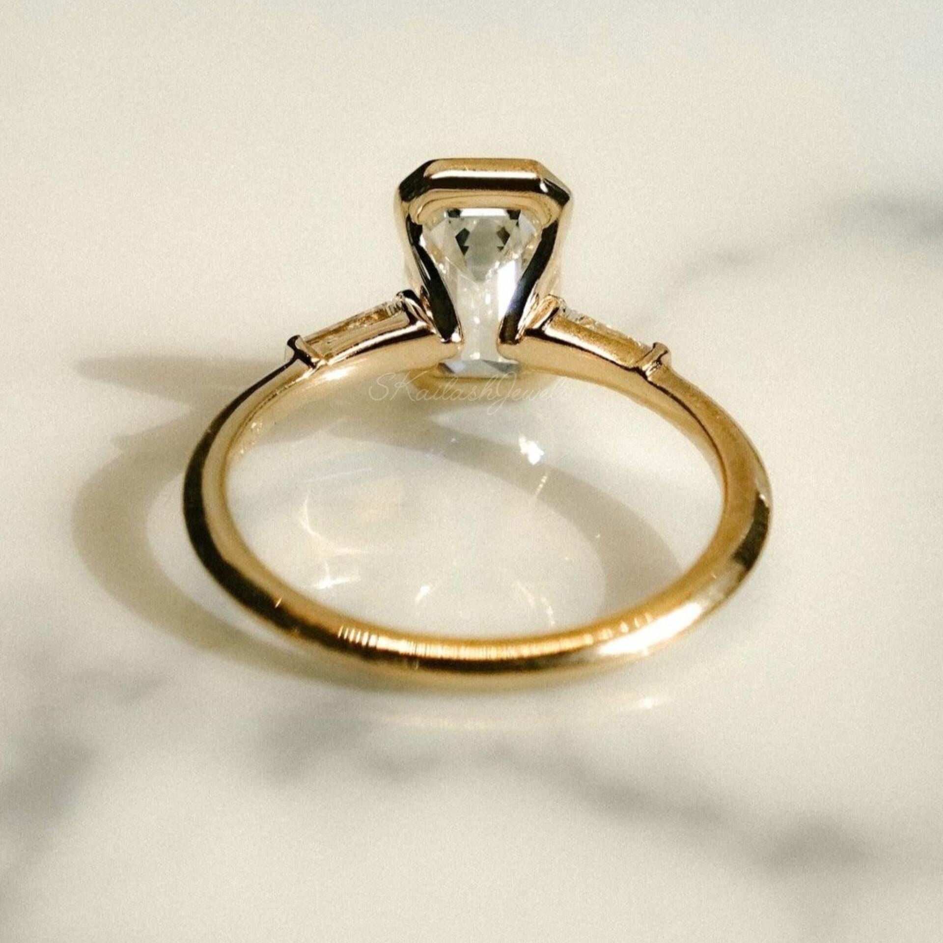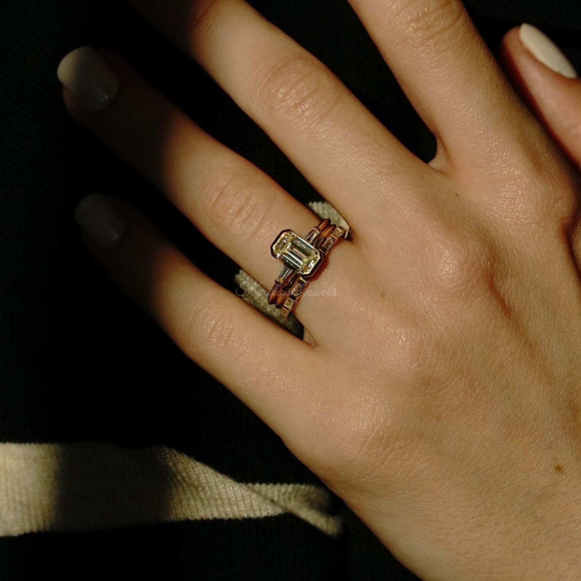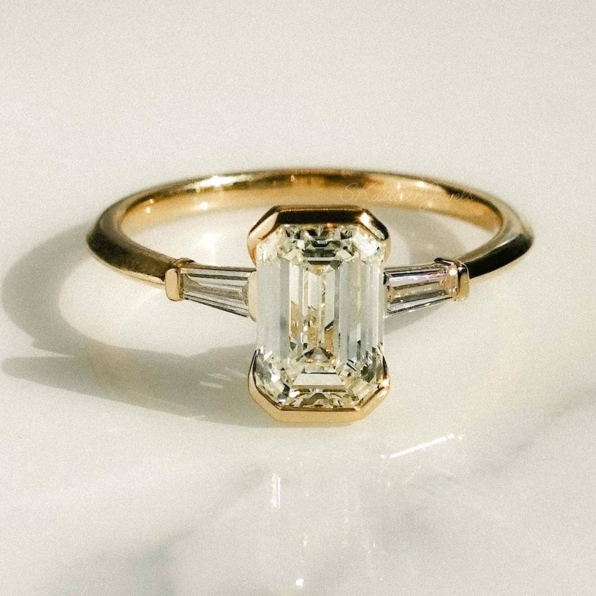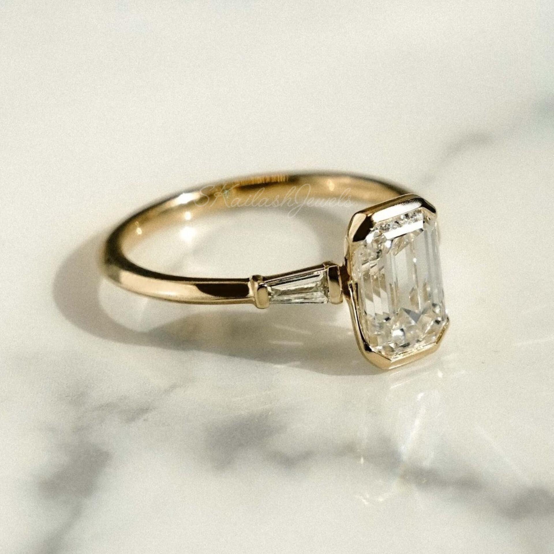 2.20 CT Emerald Cut Moissanite Solitaire Ring / Half Bezel Set 14K Solid Gold Engagement Ring 3 Stone Ring Gift For Girlfriend Birthday Proposal Gift Ring, Anniversary Ring, Bridal Ring Set, Radiant Moissanite Claw Prong Ring, Unique Design Engagement Ring, White/Yellow/Rose Gold Moissanite Ring, Moissanite Wedding Ring, Ring for Women, Moissanite Engagement Ring, Handmade Ring, Fine Jewelry, Moissanite Jewelry, Women Jewelry, Statement Ring, Customized Ring
